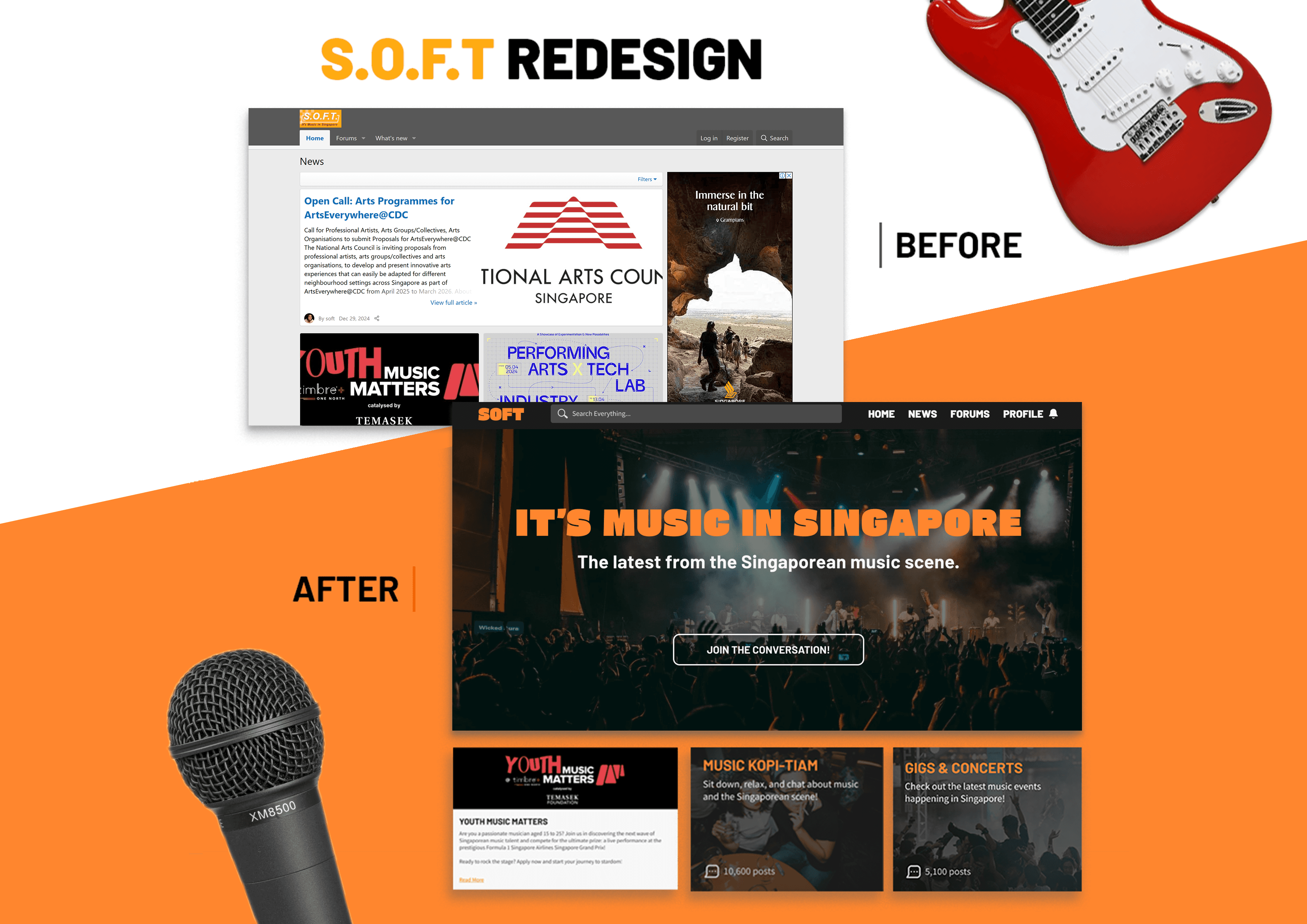A conceptual redesign to modernize S.O.F. T, a local online music forum.