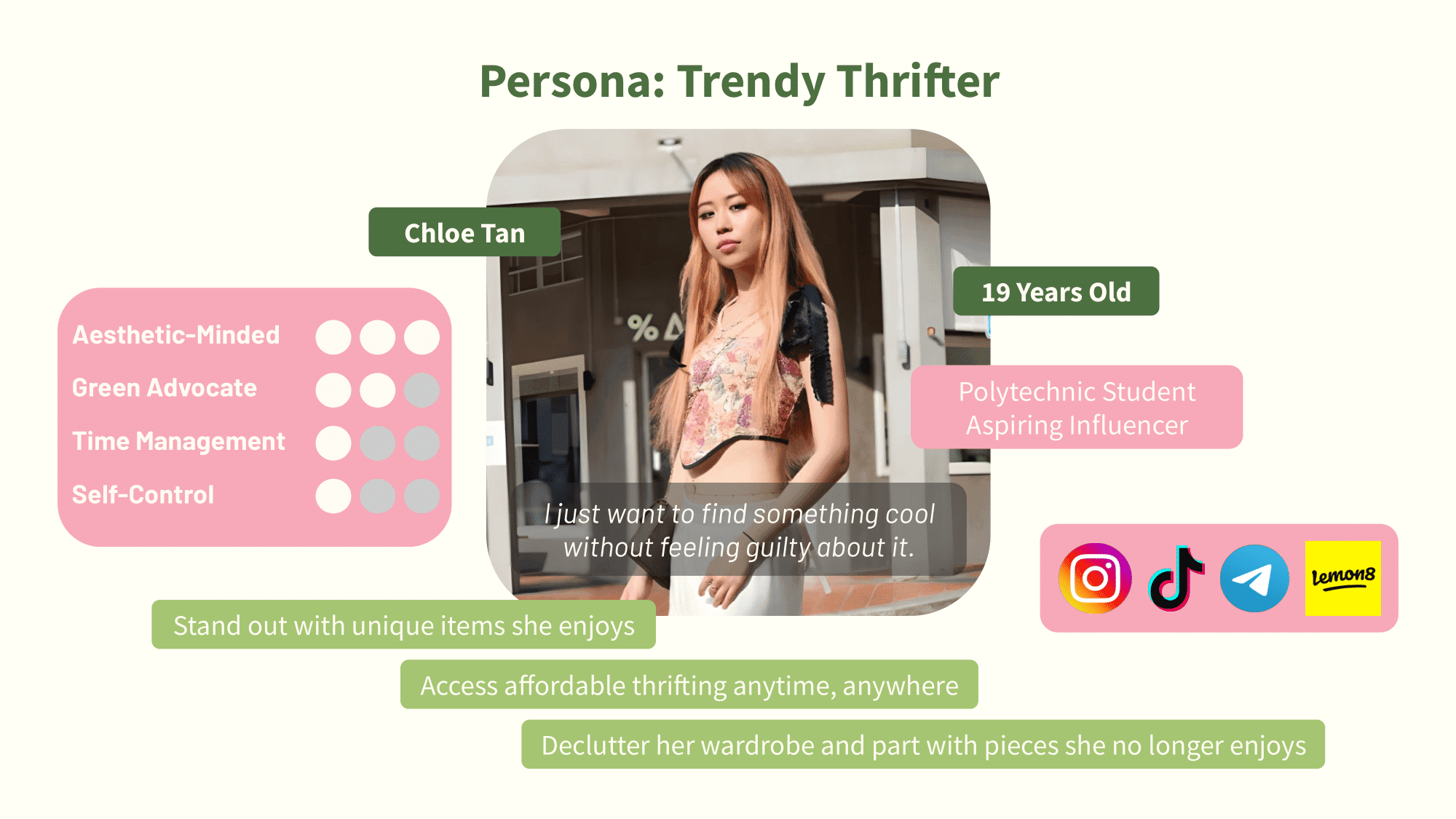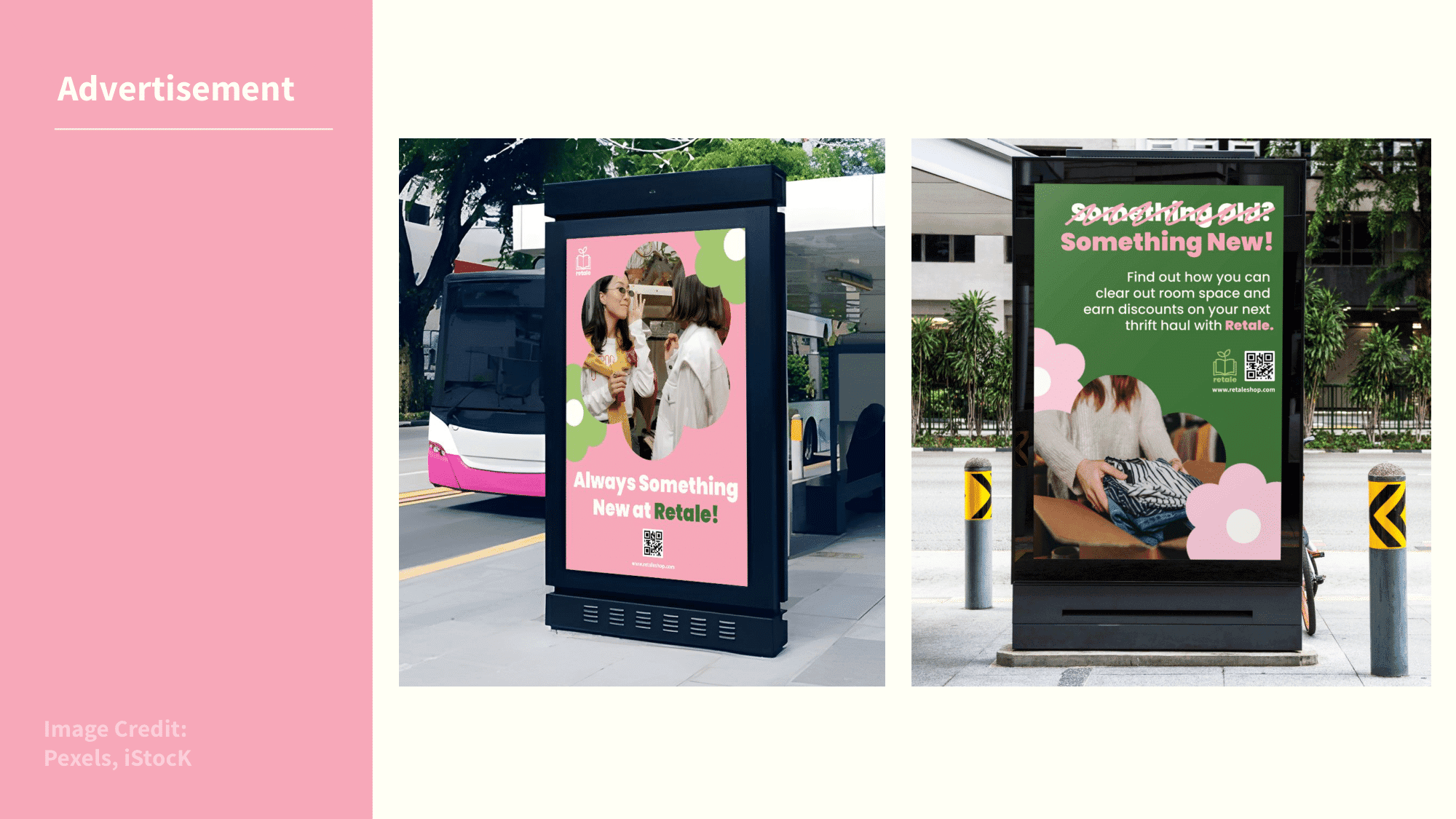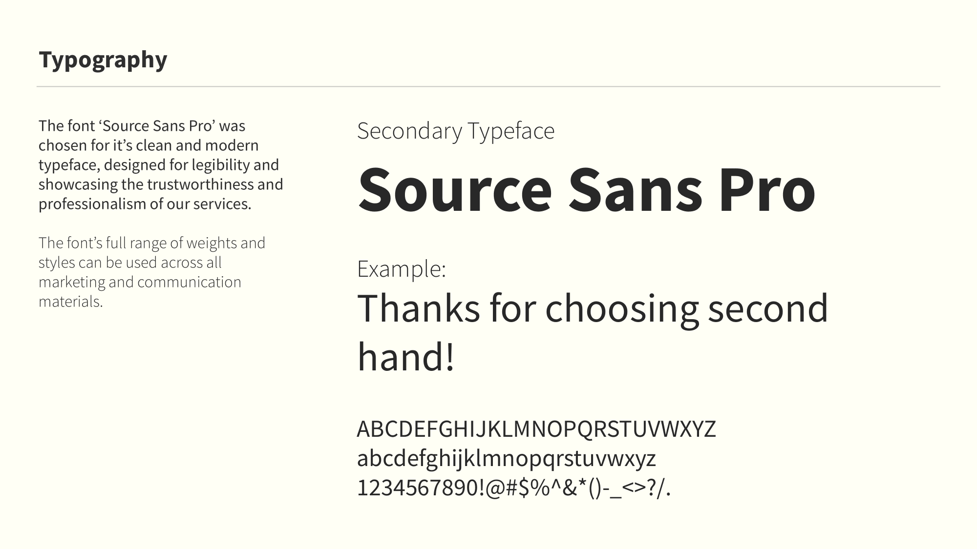 Create a brand of our choice, and develop a brand guide to define the brand's look, feel, and tone. Chosen topic was an online thrift store targeting the younger generation.