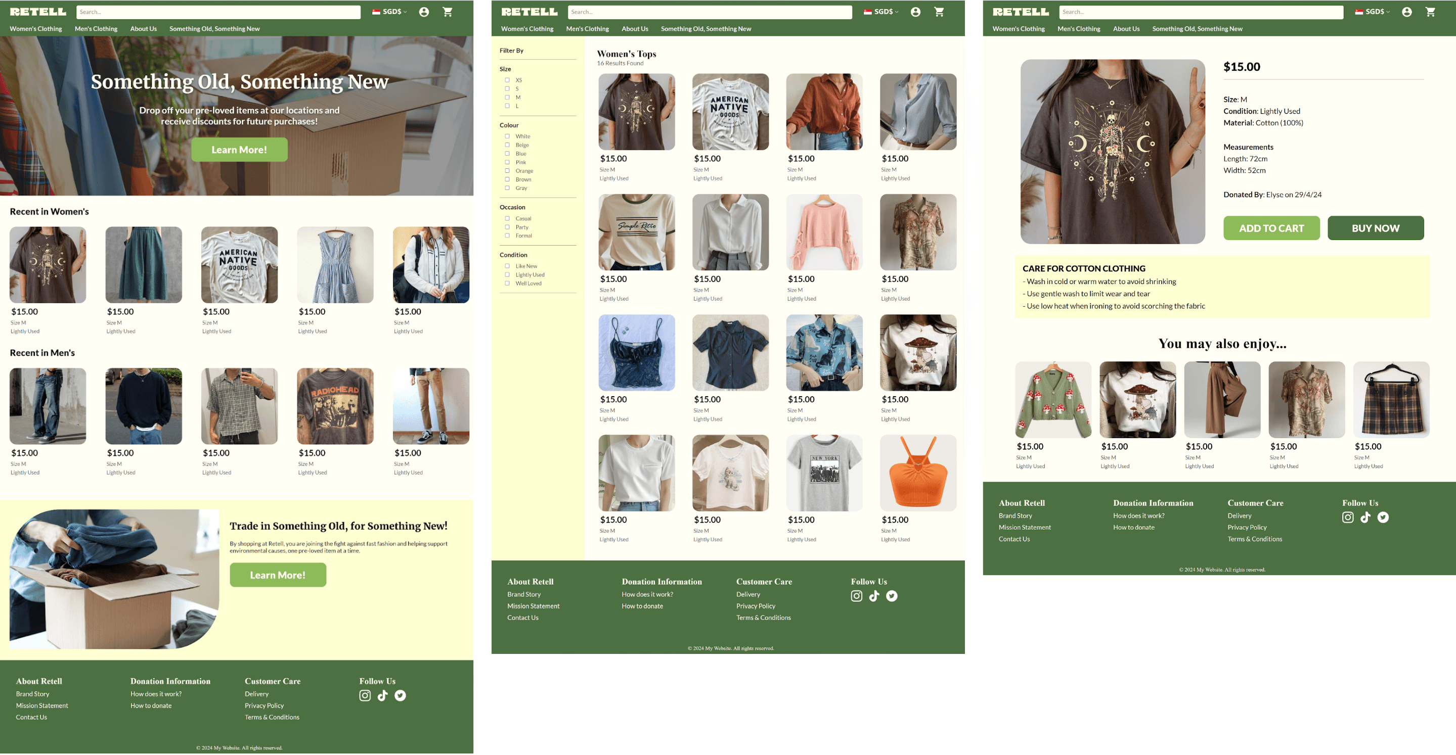 This design is a reimagining of one of my earlier projects as a designer: Retell, an online thrift store.